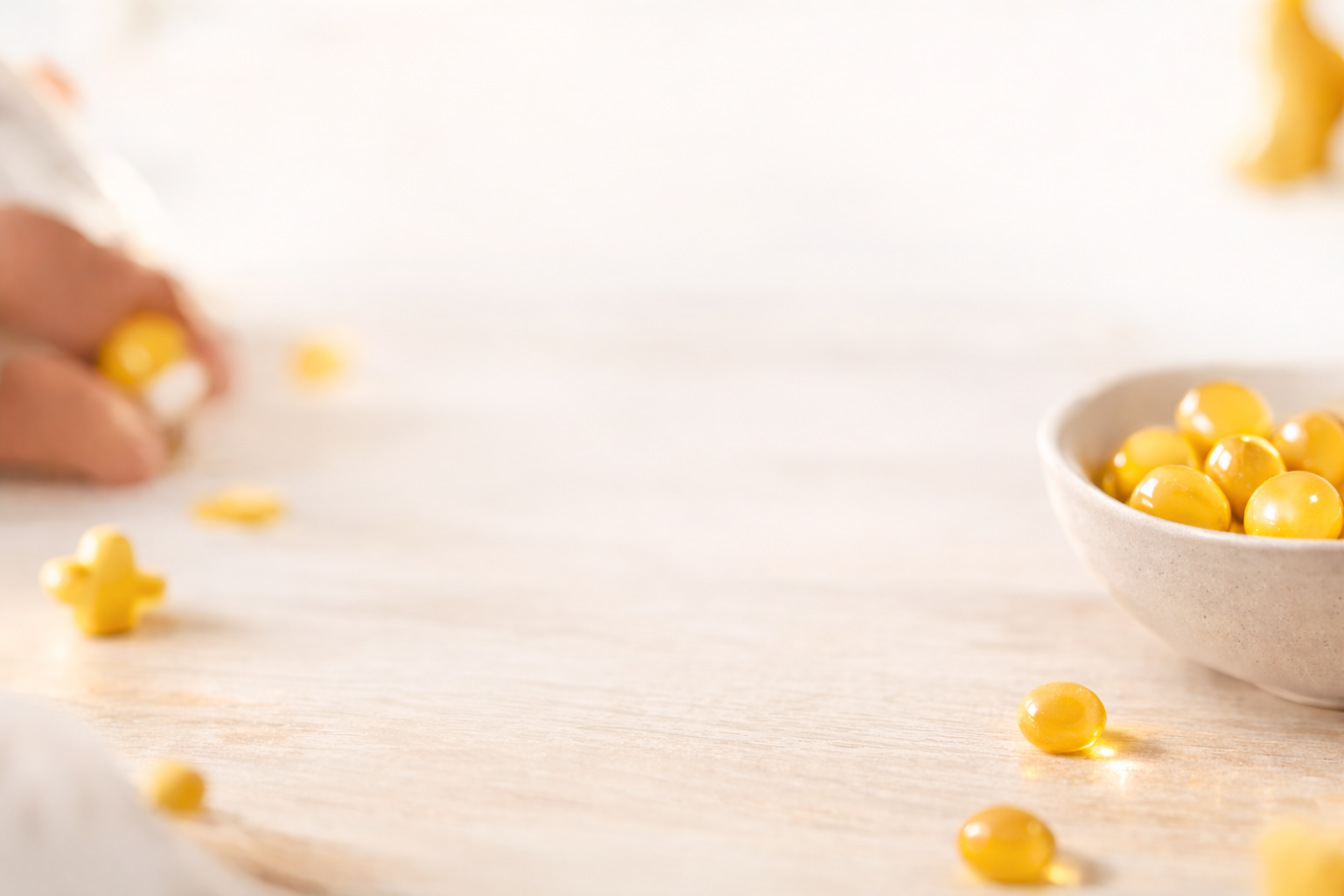 كبسولات أوميغا-3 القابلة للمضغ مع فيتامين D مُصمَّمة خصيصًا لدعم دماغ طفلك وقلبه ومناعته وصحة عظامه بطريقة طبيعية ولذيذة.