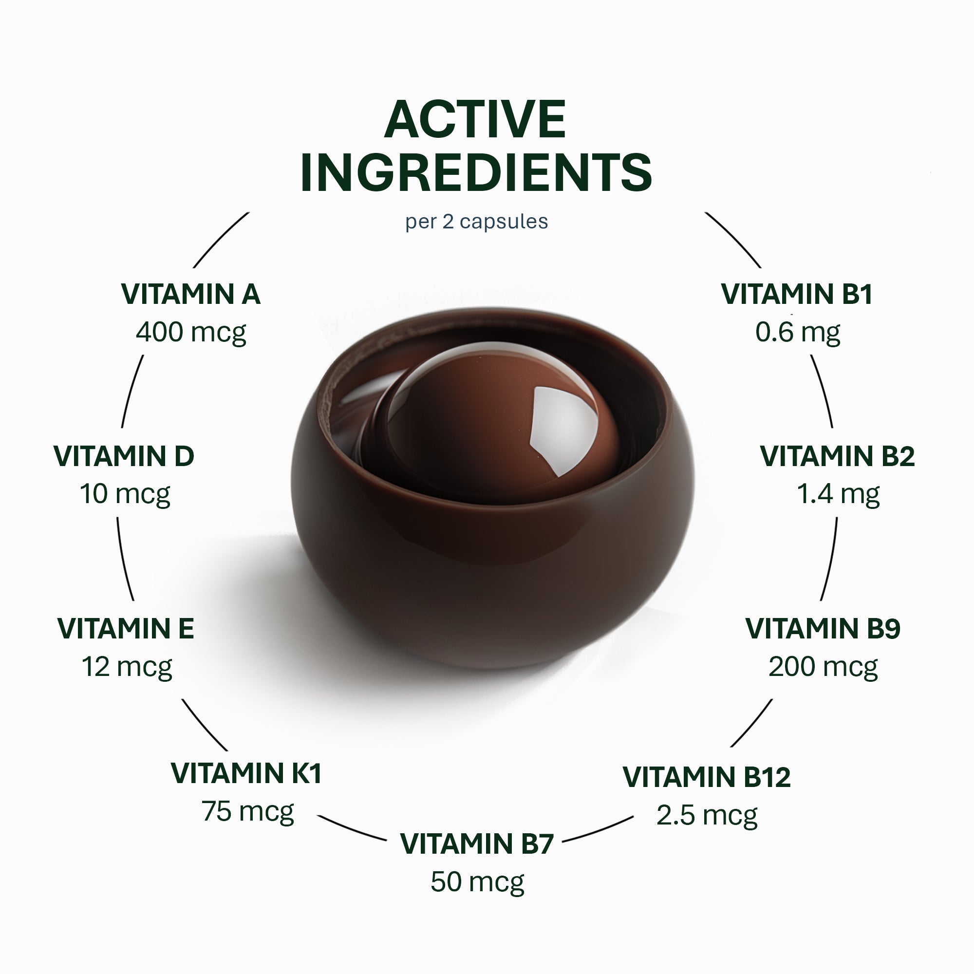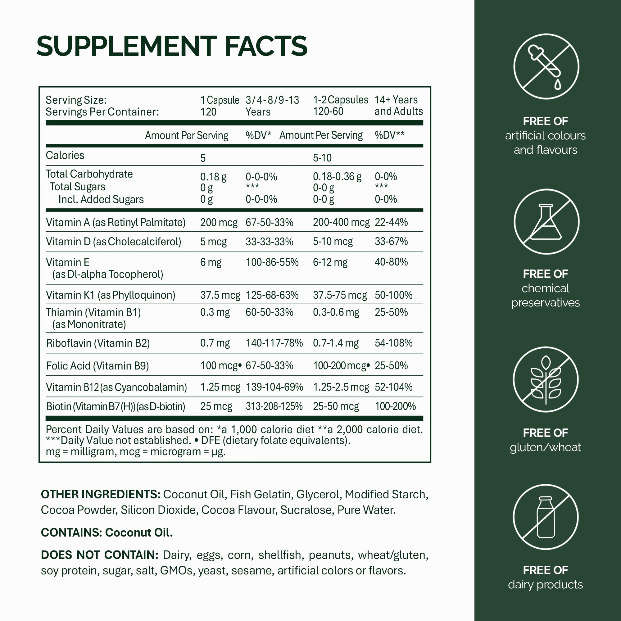 فيتامين K1 (Phylloquinone) – 37.5 ميكروغرام لكل سوفتجيل.