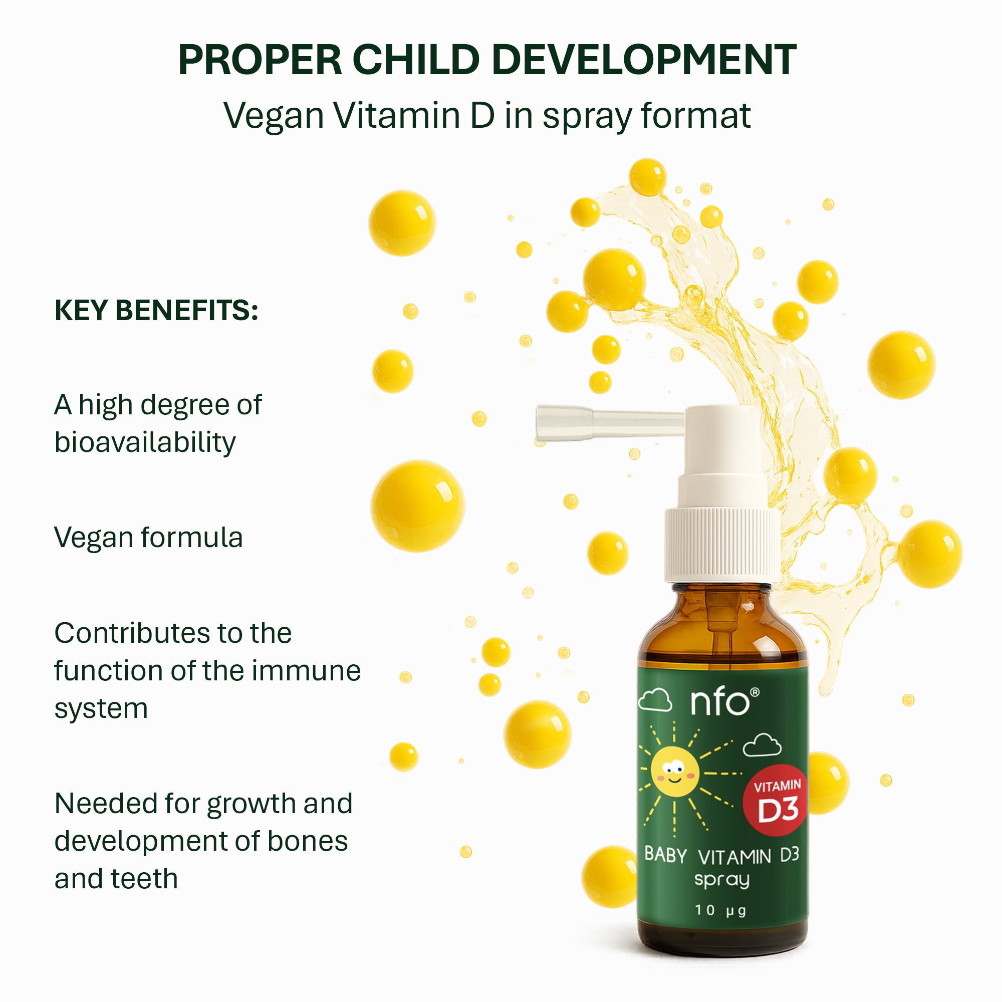 Kids D3 Spray = sunshine in a spritz. A kid-friendly vitamin D boost that supports strong bones and immunity – in an easy, tasty spray.