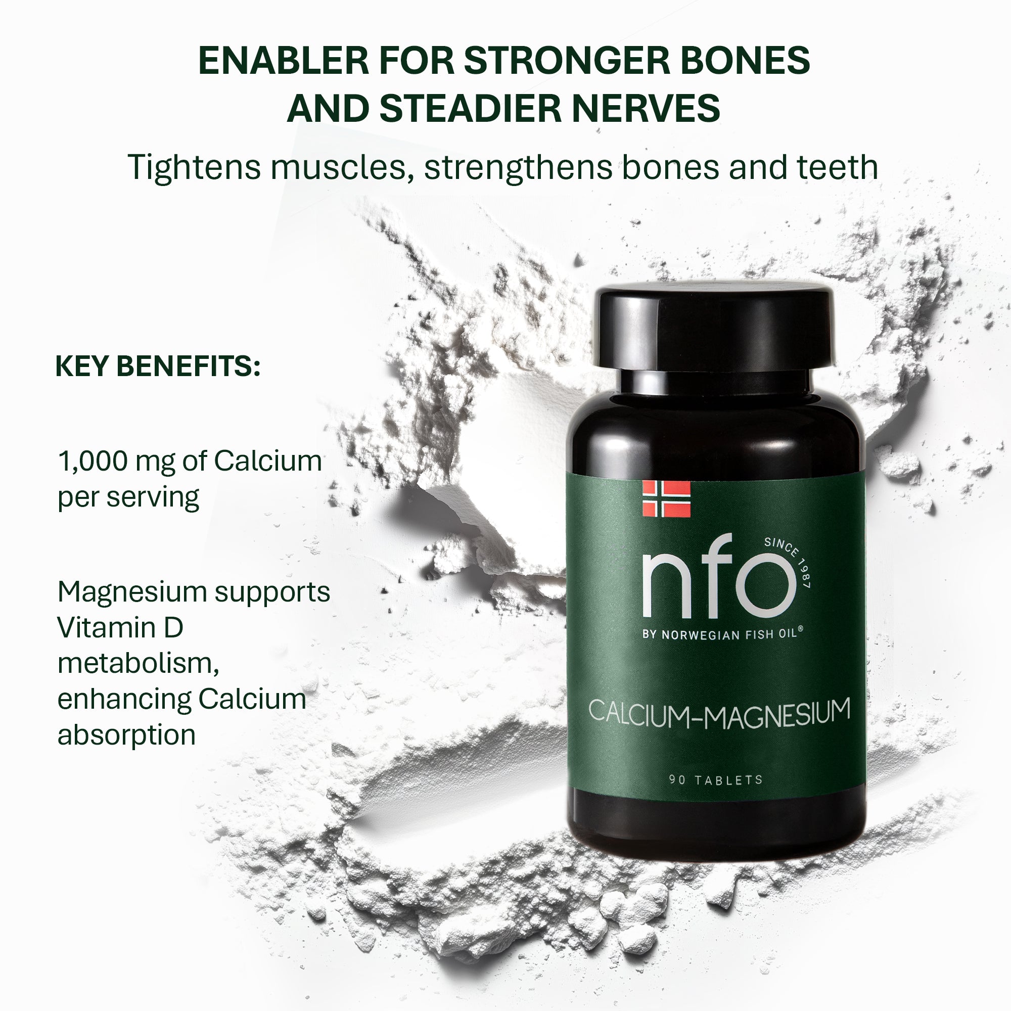 NFO Calcium Magnesium = bone & muscle power in a tablet. It strengthens bones, keeps your muscles firing smoothly, and gives you that extra support for daily energy and mobility.