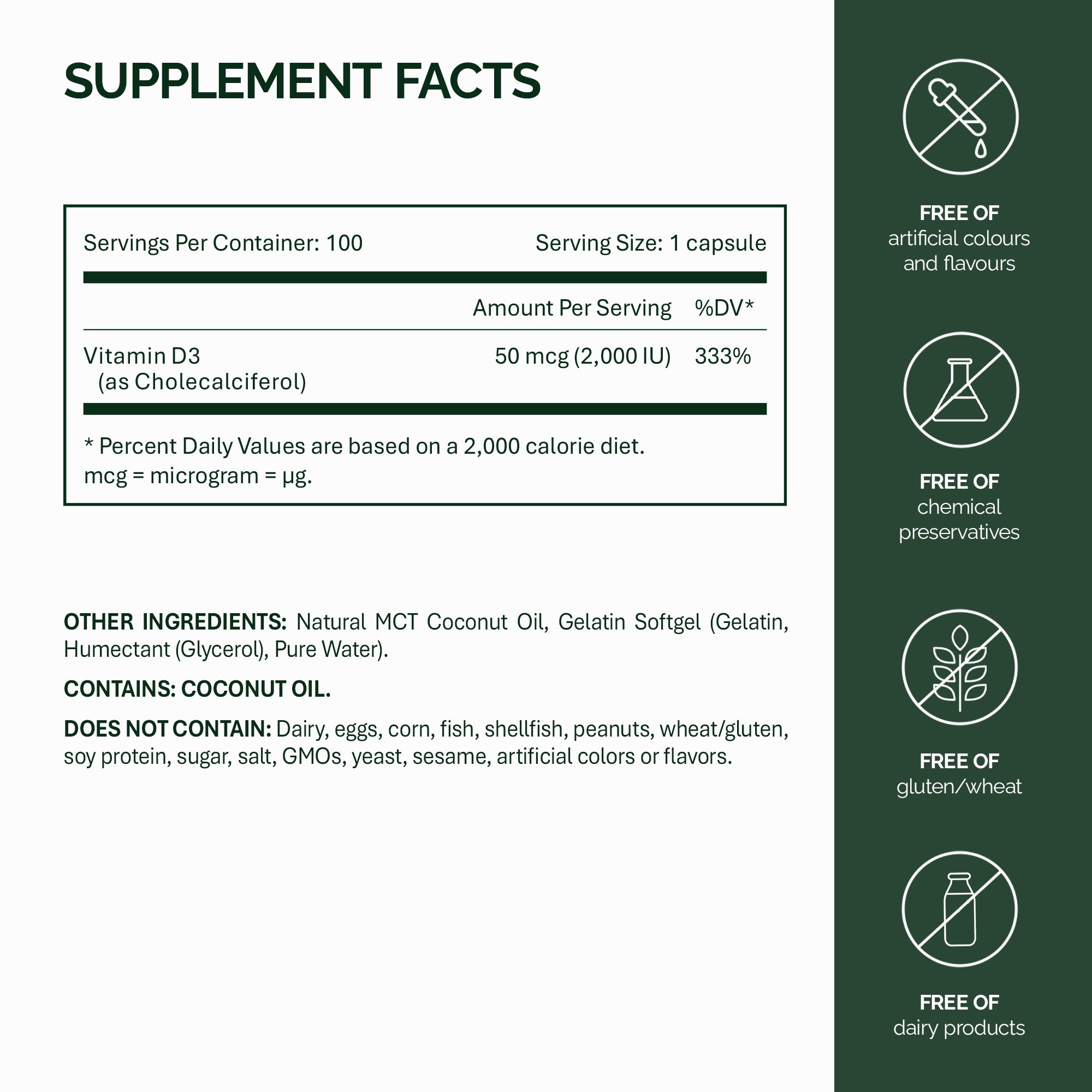Vitamin D3 2000 IU = your sunshine in a softgel. It supports strong bones and a powerful immune system, giving you the daily boost your body craves.
