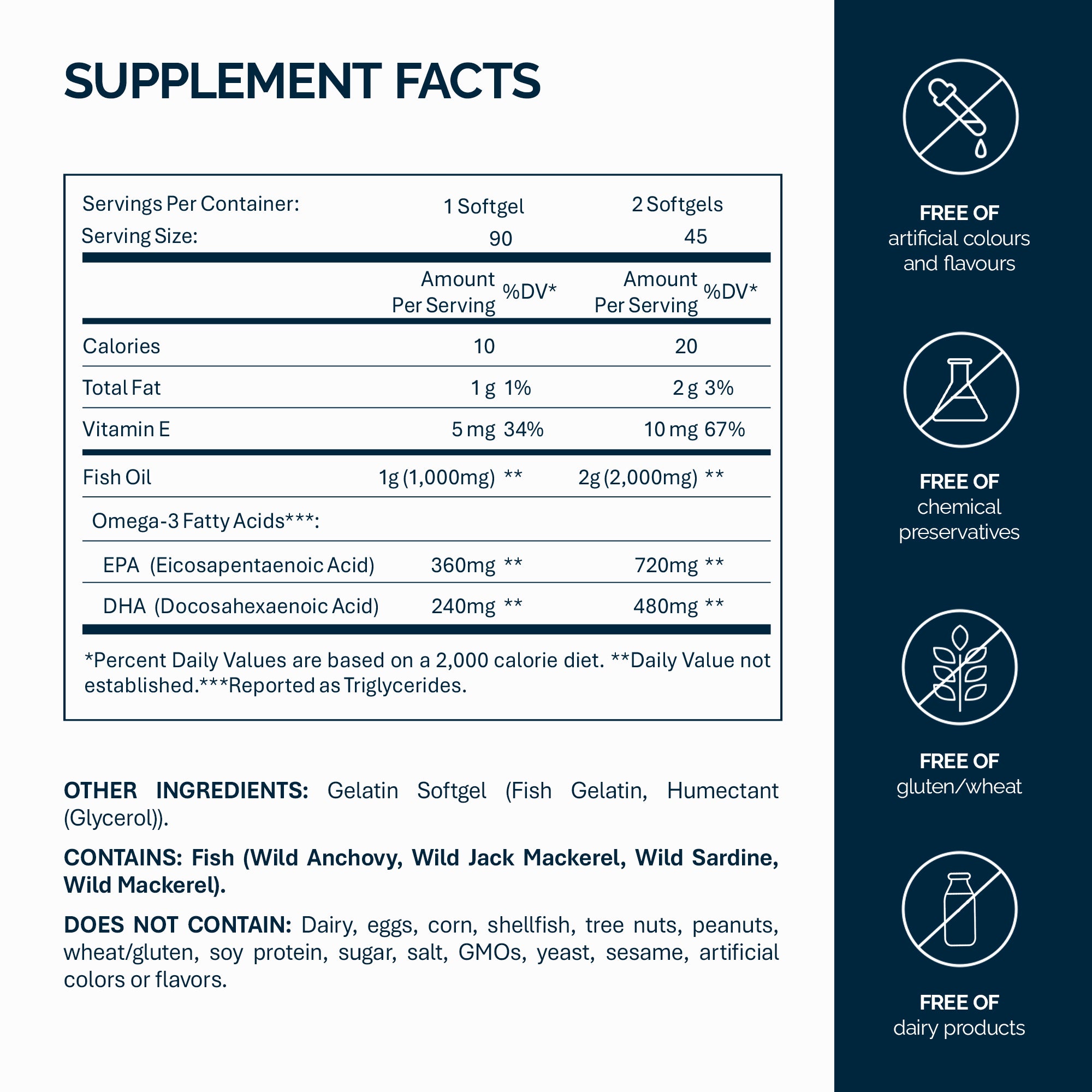 Sourced from clean, small South Pacific fish (anchovy, sardine, mackerel, jack mackerel).