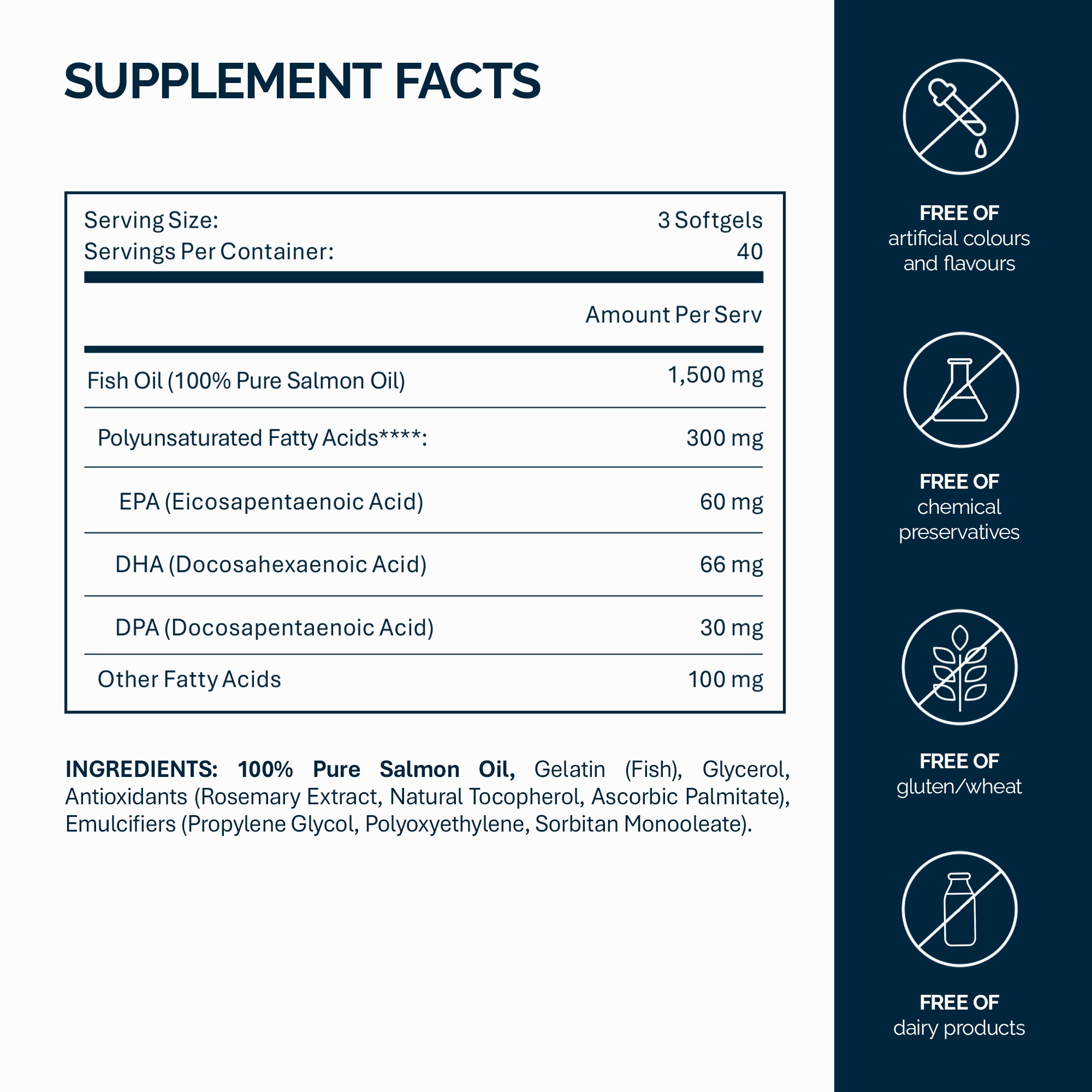 Omega 3-6-9 Salmon Oil = your daily heart & brain fuel. With essential fatty acids from salmon, it supports focus, mood, and cardiovascular health – all in one softgel.